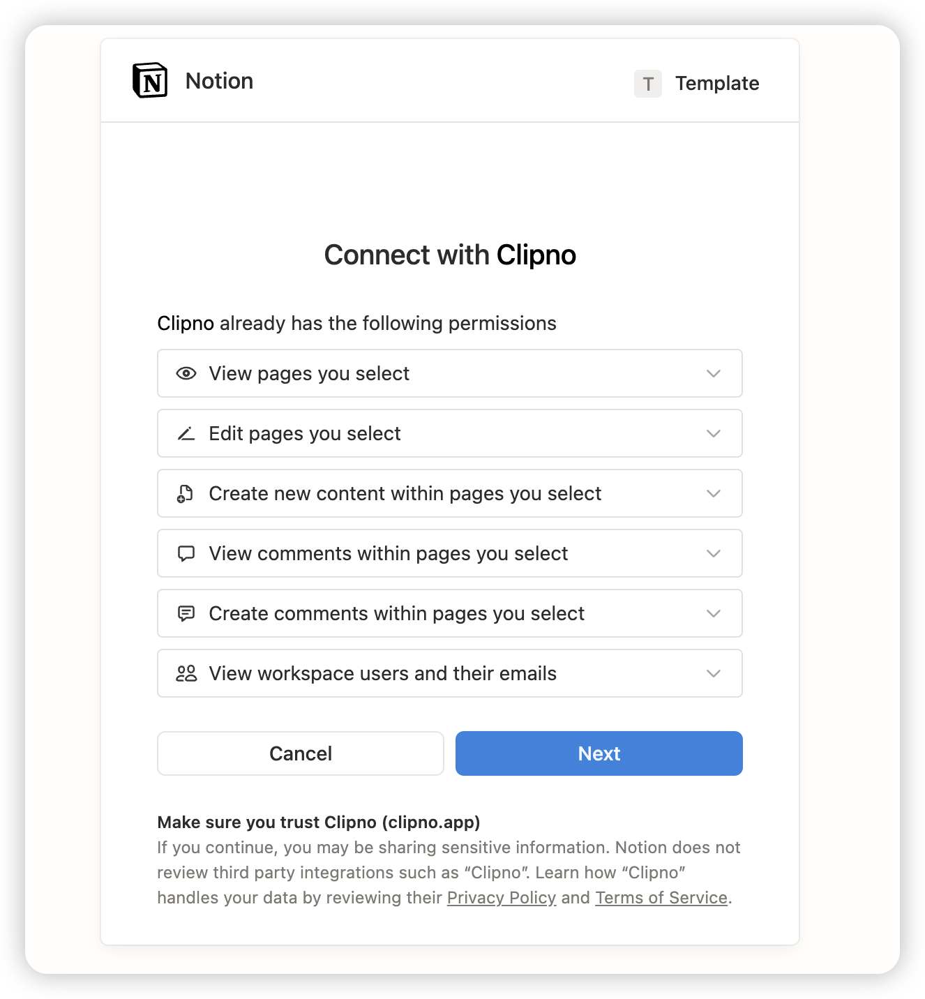 You can authorize your own Notion template so that clips and highlights are saved into the pages or databases you choose.