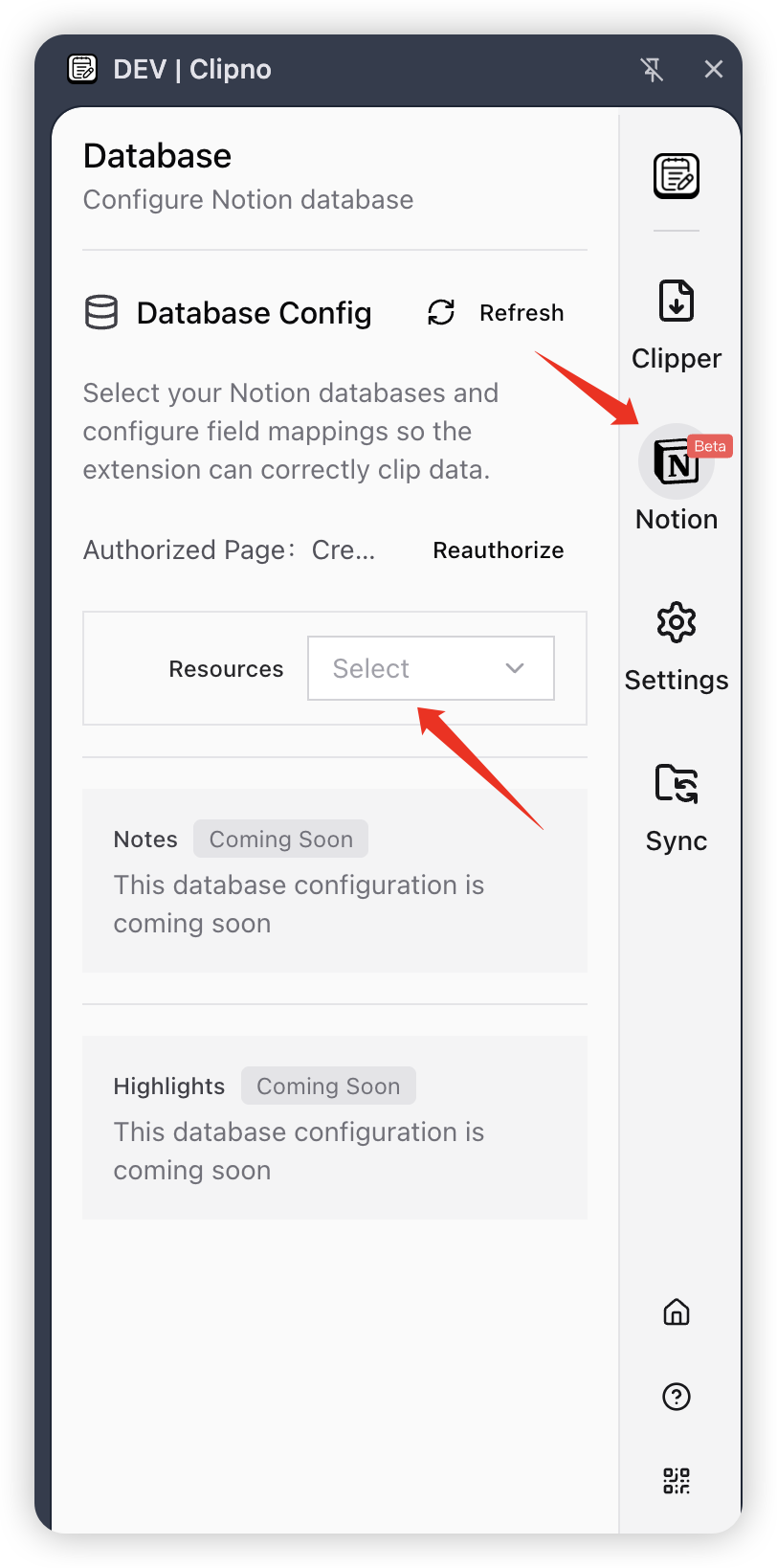- Choose the resource database: in your template, select the Notion database where clipped content should be stored (the “resource” database).